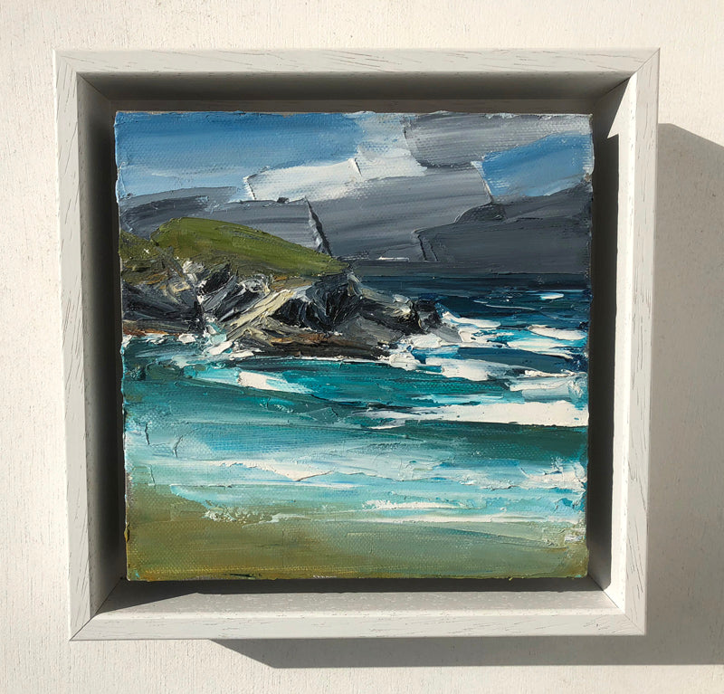 I love it when Neptune whips up an angry sea like this in the bay- dramatic and humbling. Chunky oils represent the wildly rough seas sometimes seen during summertime at Treyarnon Bay.